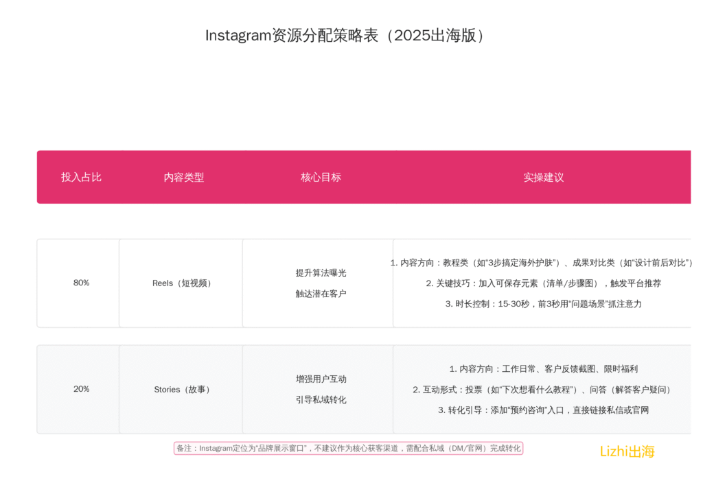1. 资源分配:80%精力投入Reels(聚焦“教程类”“成果对比类”内容,如“3步改造海外出租屋”),20%精力用Stories做“日常互动”(如客户反馈截图、工作日常);